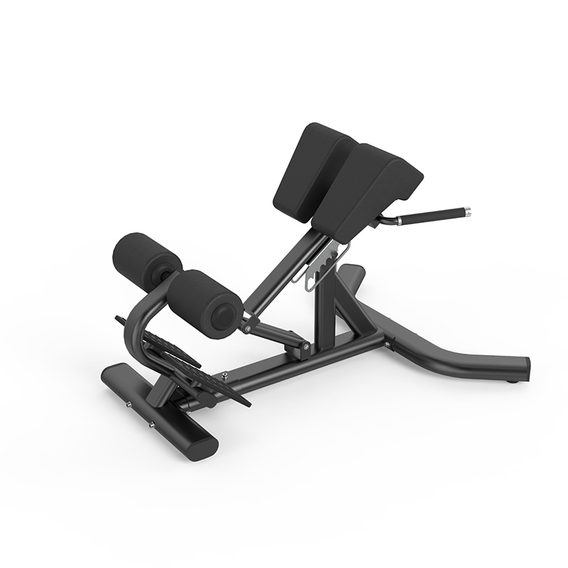 罗马椅是为了完成健身动作罗马转体而演化来的一种健身器材,其主要特点是能够针对人体的竖脊肌、臀部、下背核心等部位进行有效的锻炼。罗马椅的设计通常包括一个可调节的靠垫、脚钩泡棉、运动踏板和运动手把等关键部位,这些设计都有助于稳定身体,提高训练效果。